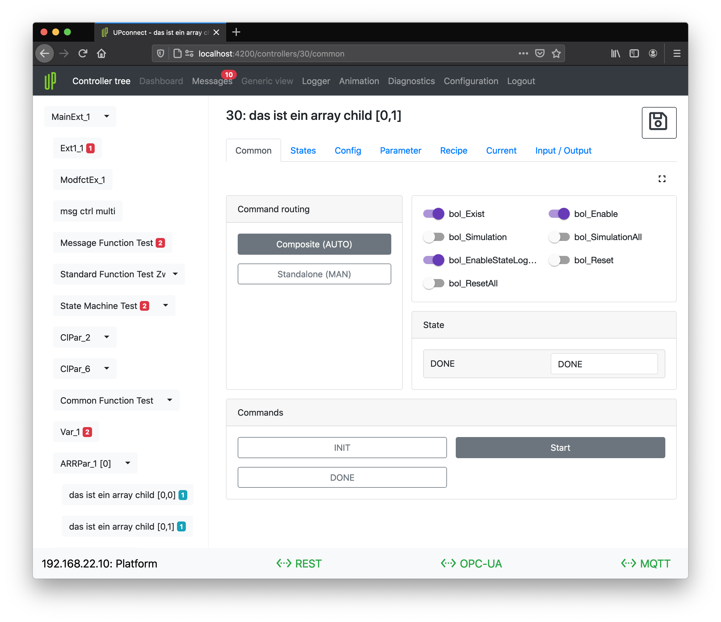 - Message badges represents number of messages with highest messageType (UP) or message class (BasePlc).
