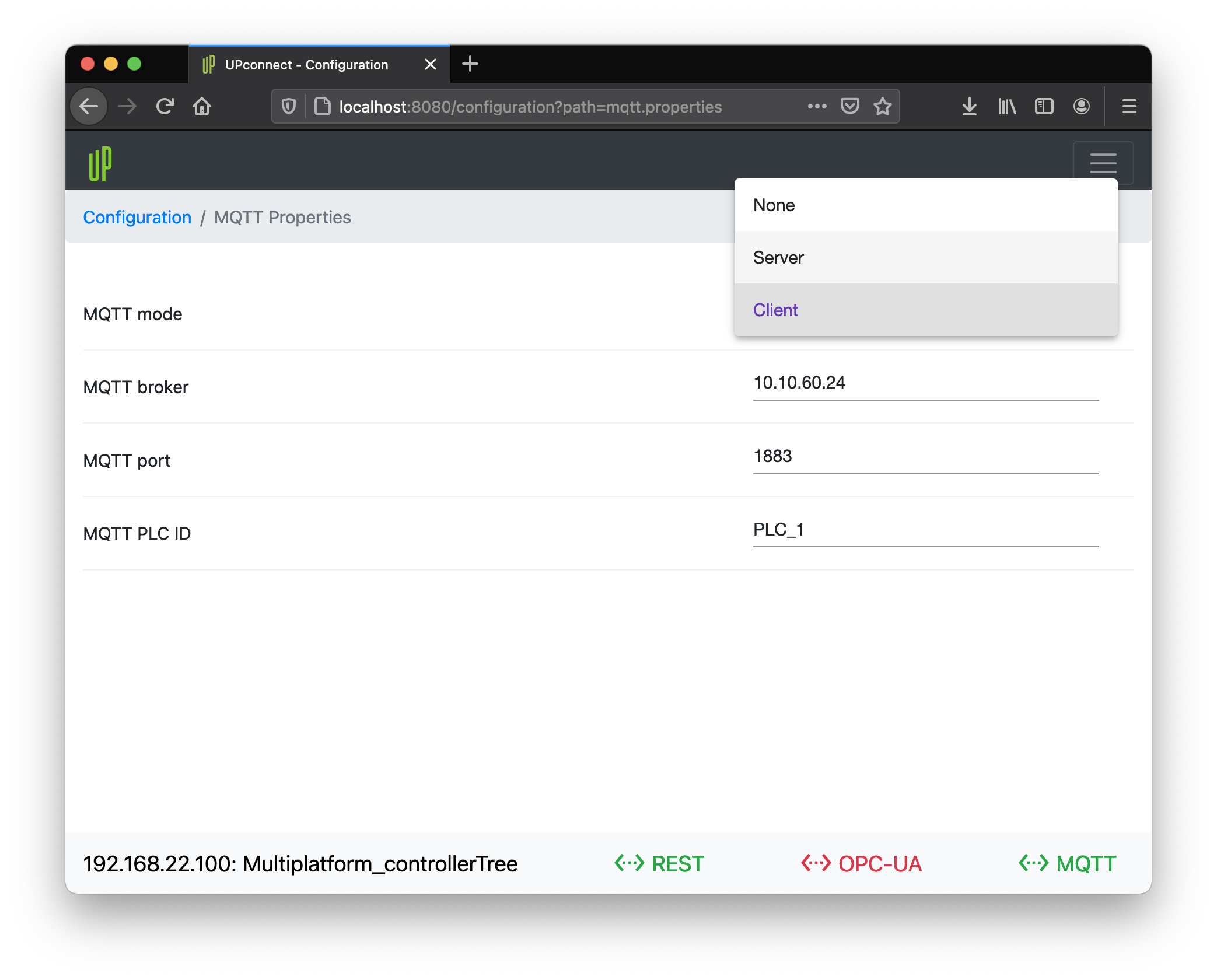 - MQTT PLC ID: does not really care, since point to point connection between PLC and Service Ui.