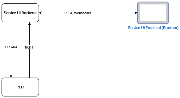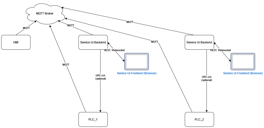 With this use case multiple MQTT clients are supported. If item communication is handled over MQTT too (not supported yet). There is no direct connection between Service Ui backend and PLC required.
