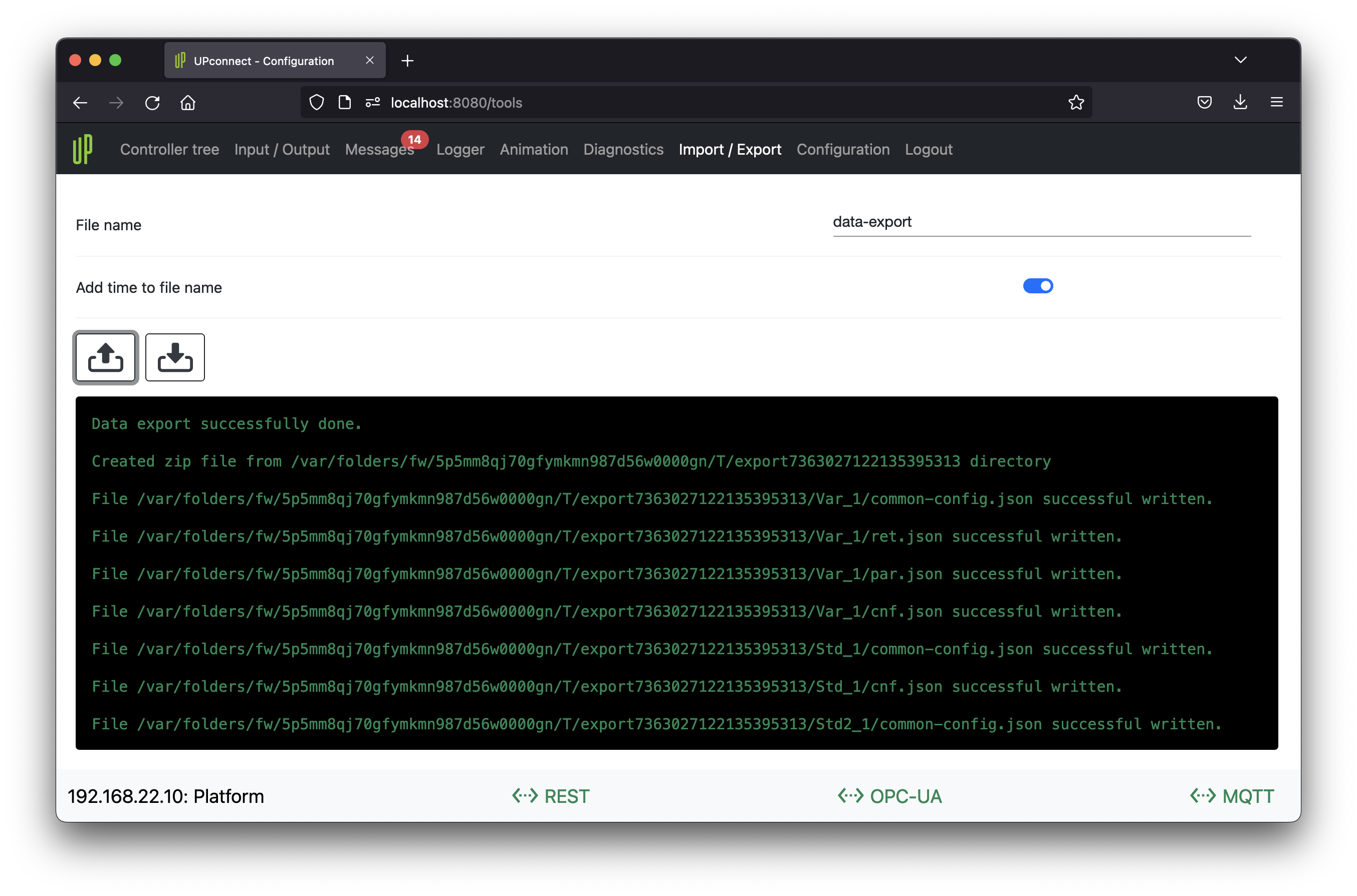 Content of zip archive contains a JSON file for each structure and controller.