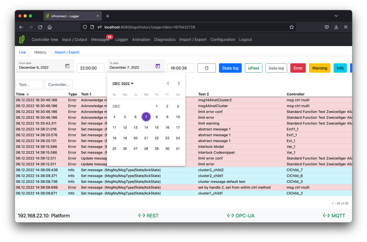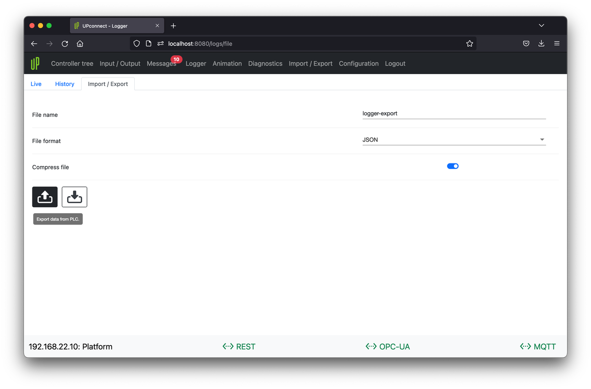 For further informations: UP - Logger persistence, UP - Log file, UP - Logger data import-export