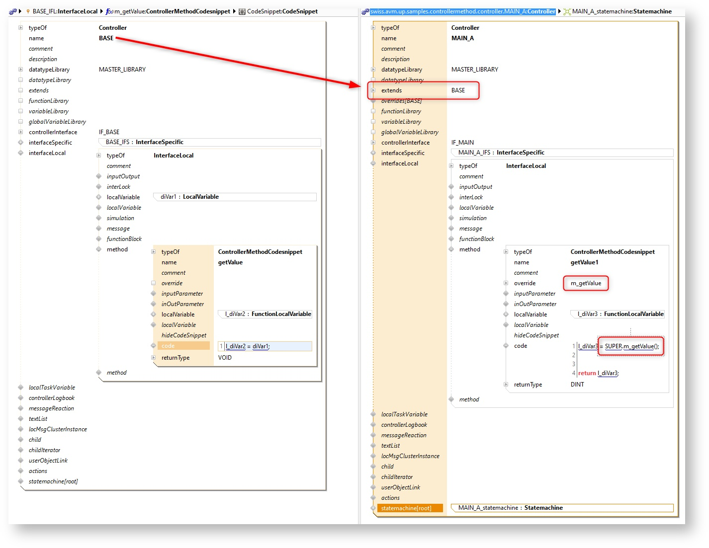 Methods of a base controller can be overwritten. Overwritten methods are subsequently no longer visible in the derived controller, but can be called in the overwriting method using a SUPER object.