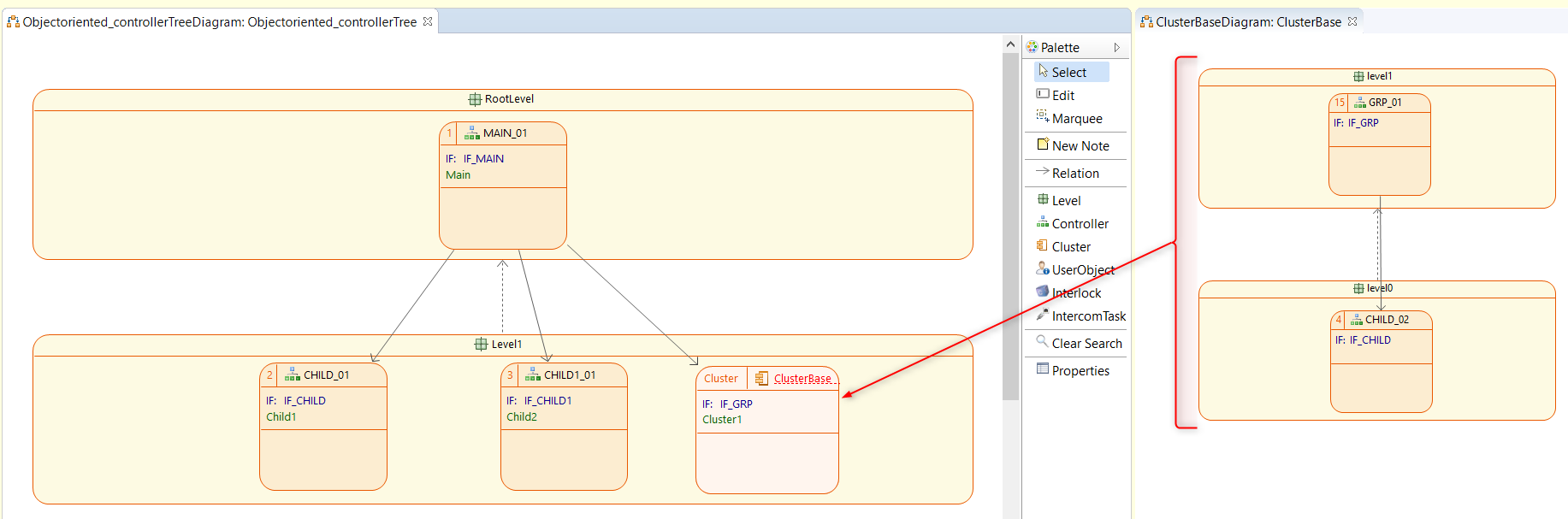 Clusters are defined by a cluster class which can then be instantiated at any level in the ControllerTree. Like with controllers, cluster instances can be opened by double-click in the ControllerTree view.