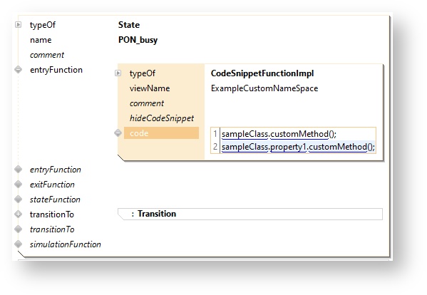 This mechanism allows you to extend the UP meta model with your own classes and properties of these classes. These classes and their methods can be used in the project.