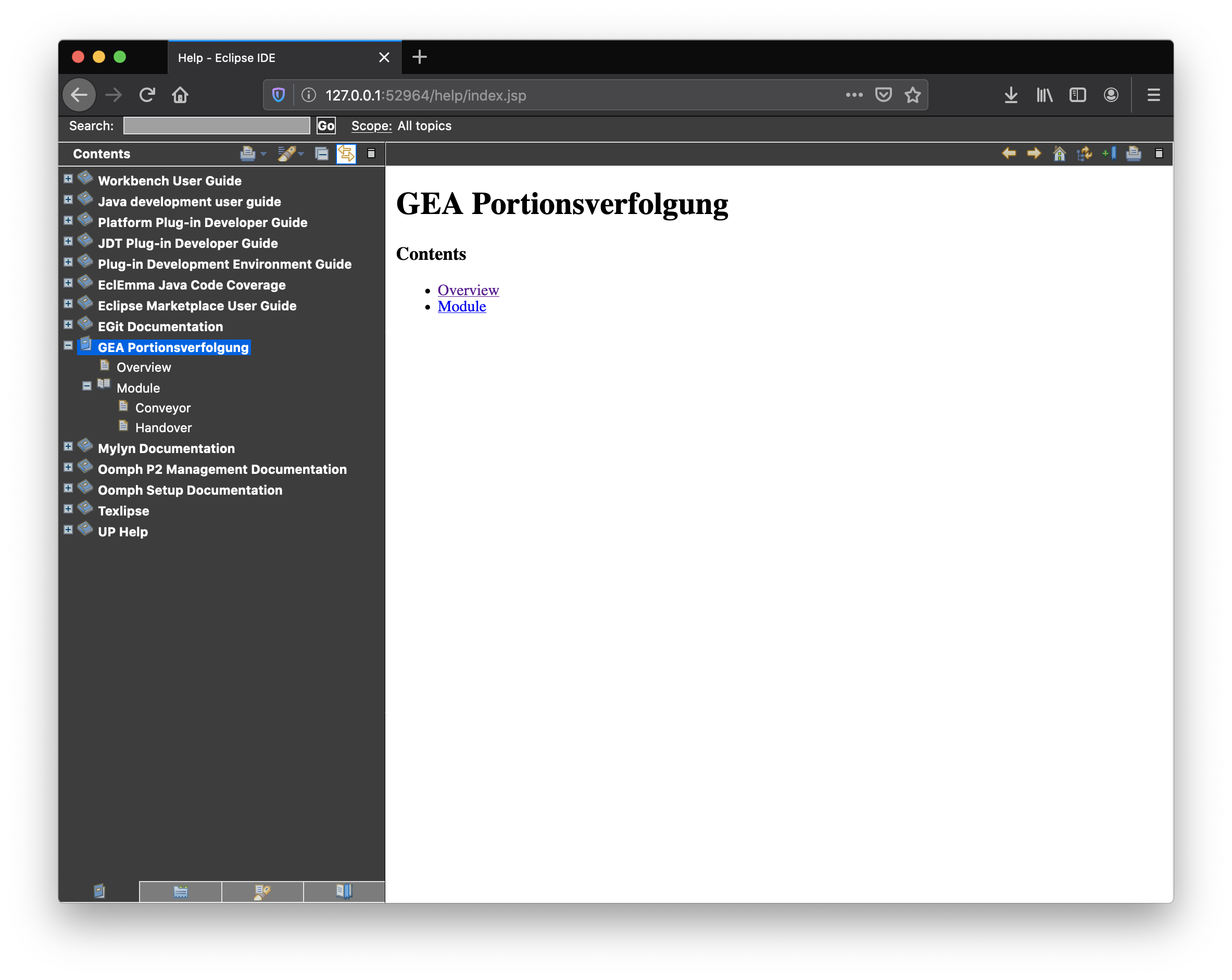 Consider that the Eclipse internal web browser does not care about "X-Frame-Options Policy" set by confluence server. It supports direct navigation from table of content to page. However, the Eclipse internal web browser does not support all actual ECMAScript features, so use an external browser if some missing features are required to show web content and use new tab link while navigating.