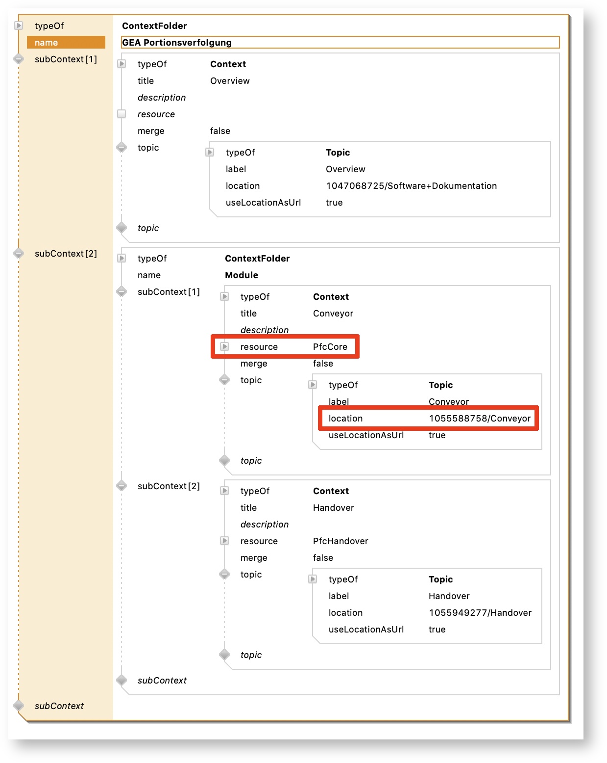 Fill ContextFolder instance with some content: