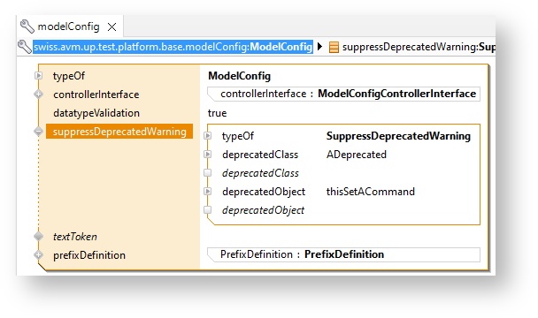 suppressDeprecatedWarning Deprecated elements were shown as warning. The warnings can suppressed in the model config.