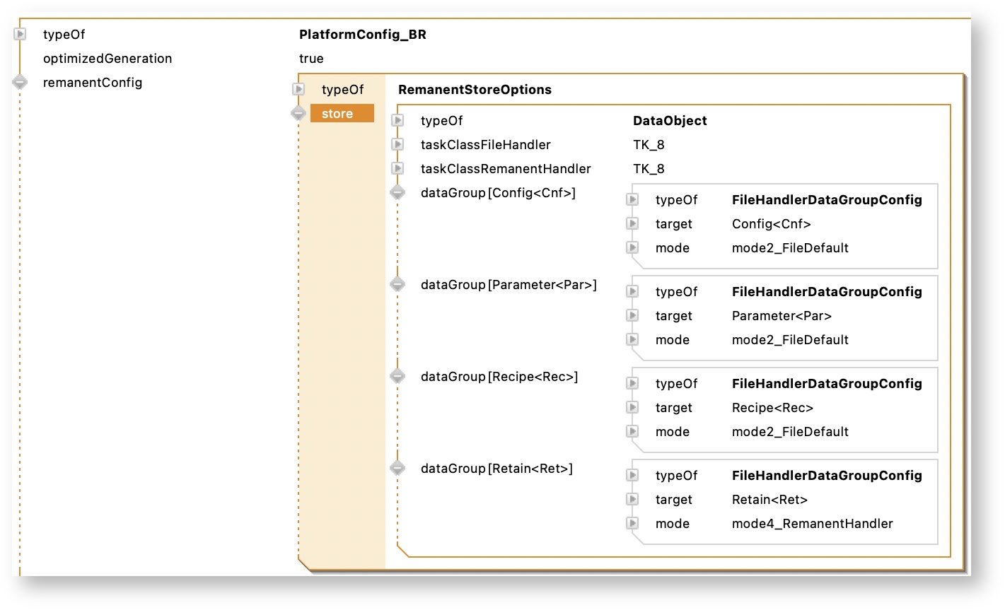 Remanent handler behavior is more like usual RETAIN, PERSISTENT management of PLC platforms. All data groups with mode4_RemanentHandler configuration are handled as one global remanent data object.